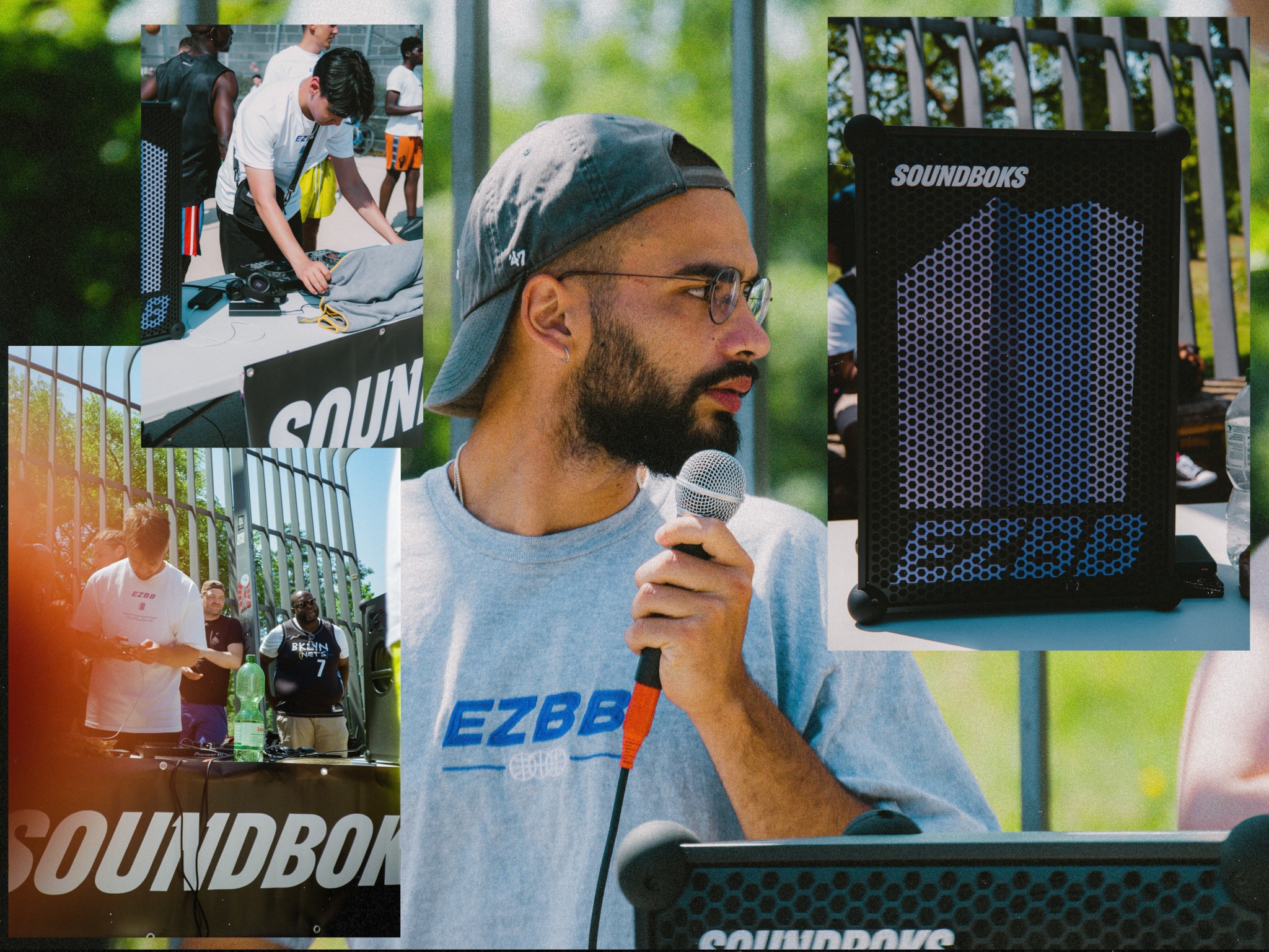 Ausgestattet werden wir von SOUNDBOKS seit 2021, mit ihren High-End Bluetooth Performance Lautsprechern, die uns auf Streetball Courts und Aktivierungen im öffentlichen Raum mit Musik bespielen. Die starke Batterielaufzeit und hohe Lautstäre machen sie zu einem Essential für EZBB.